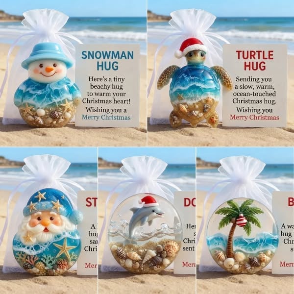 Carry a piece of coastal Christmas cheer in your pocket! Each 7x7cm gift set features a beautiful sea glass creation paired with an inspirational message card - the perfect little gift to spread holiday warmth and ocean magic!